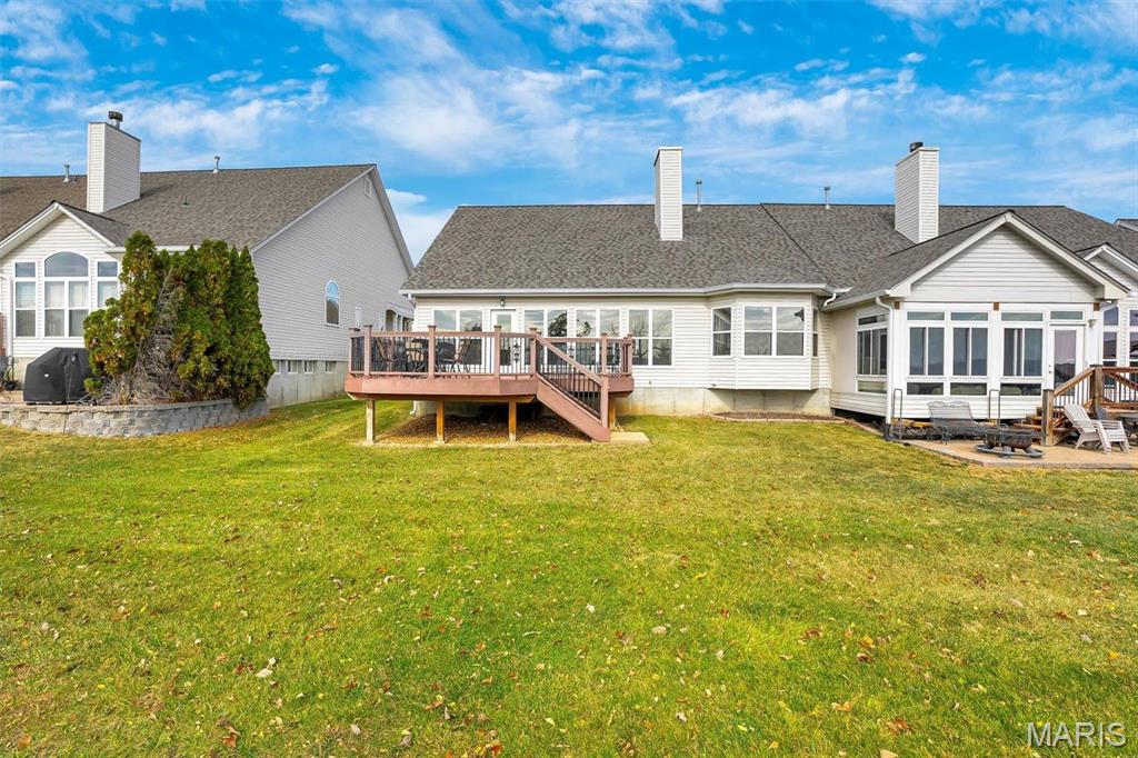 Welcome to your3500+ sq ft. dream villa, in the highly desirable golf community of The Legends. Inviting entry opens to the spacious, vaulted great room that features Gorgeous Brazilian Tiger Wood floors, fireplace flanked by built in shelving, floor to ceiling windows w/ remote blinds & the Million Dollar View. Walkout to your spacious maintenance free deck have a seat & take in these Breathtaking,Year-Round Views. Your kitchen has 42"cabinets, tons of counter space, large island, stainless appliances, gas cooktop, planning desk. Main floor vaulted primary bedroom w/bay window large walk-in closet & newer, beautiful, updated bath. A second bedroom/office&second full bath complete the main level. The finished LL adds additional living space and boasts a family room, fireplace w/all built in shelving, bar area, sleeping area w/walk in closet, full bath & plenty of storage. Newer roof, gutters & driveway. This is a duplicate listing of #24069221. Location: Other